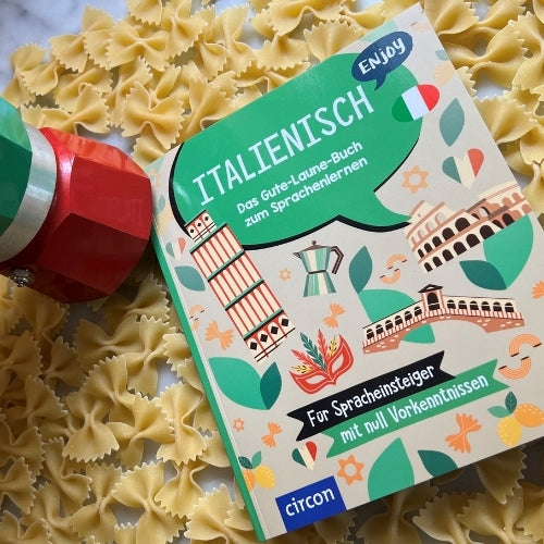 „Genau!“ antwortete ich ihm. „Nie lockerlassen. Auch beim Erlernen der italienischen Sprache muss man dranbleiben. Und das nächste Mal bringe ich dir unser nettes Buch „Enjoy. Das Gute-Laune-Buch zum Sprachenlernen“ mit. Das ist dann für deine Frau, die noch kein Italienisch kann. Dann könnt ihr gemeinsam das nächste Mal eure Pizza auf Italienisch bestellen.“