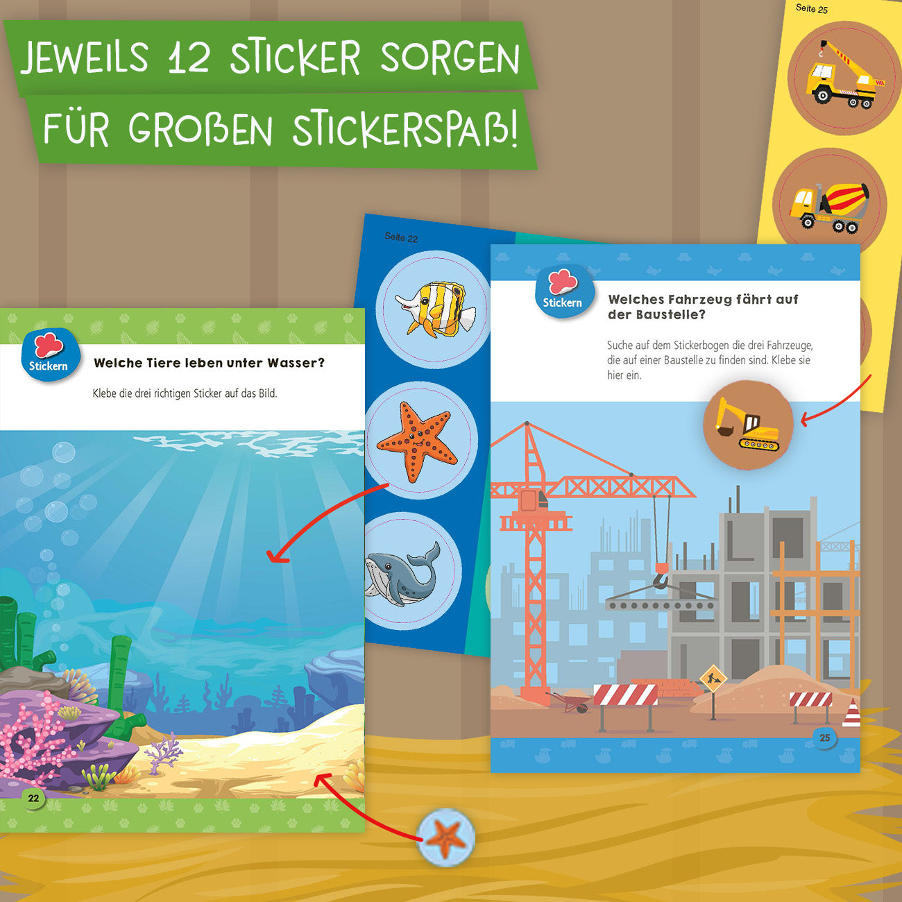 Egal ob Schattenbilder von Traktoren, Übungen zum richtigen Verbinden, Labyrinthe, Suchaufträge oder unkomplizierte Bastelaufgaben wie Teile ausschneiden und aufkleben – hier lernen die Kinder auf spielerische Art und Weise vieles zum beliebten Thema Fahrzeuge. Konzentrationsfähigkeit, Kreativität und Feinmotorik werden ganz nebenbei gefördert und auch der erste Umgang mit Schere und Kleber wird geübt. Und natürlich kommt auch der Spaß nicht zu kurz! Alle Innenseiten sind perforiert und heraustrennbar, sodass die kleinen Künstlerinnen und Künstler sich leichter tun, die Seiten zu schneiden, zu bemalen oder zu bekleben.