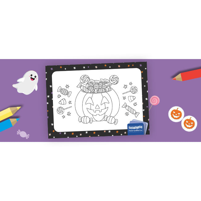 Ein frecher Kürbis und viele leckere Bonbons & Lollies sollen endlich Farbe bekommen! Hier wartet gruseliger Ausmalspaß!