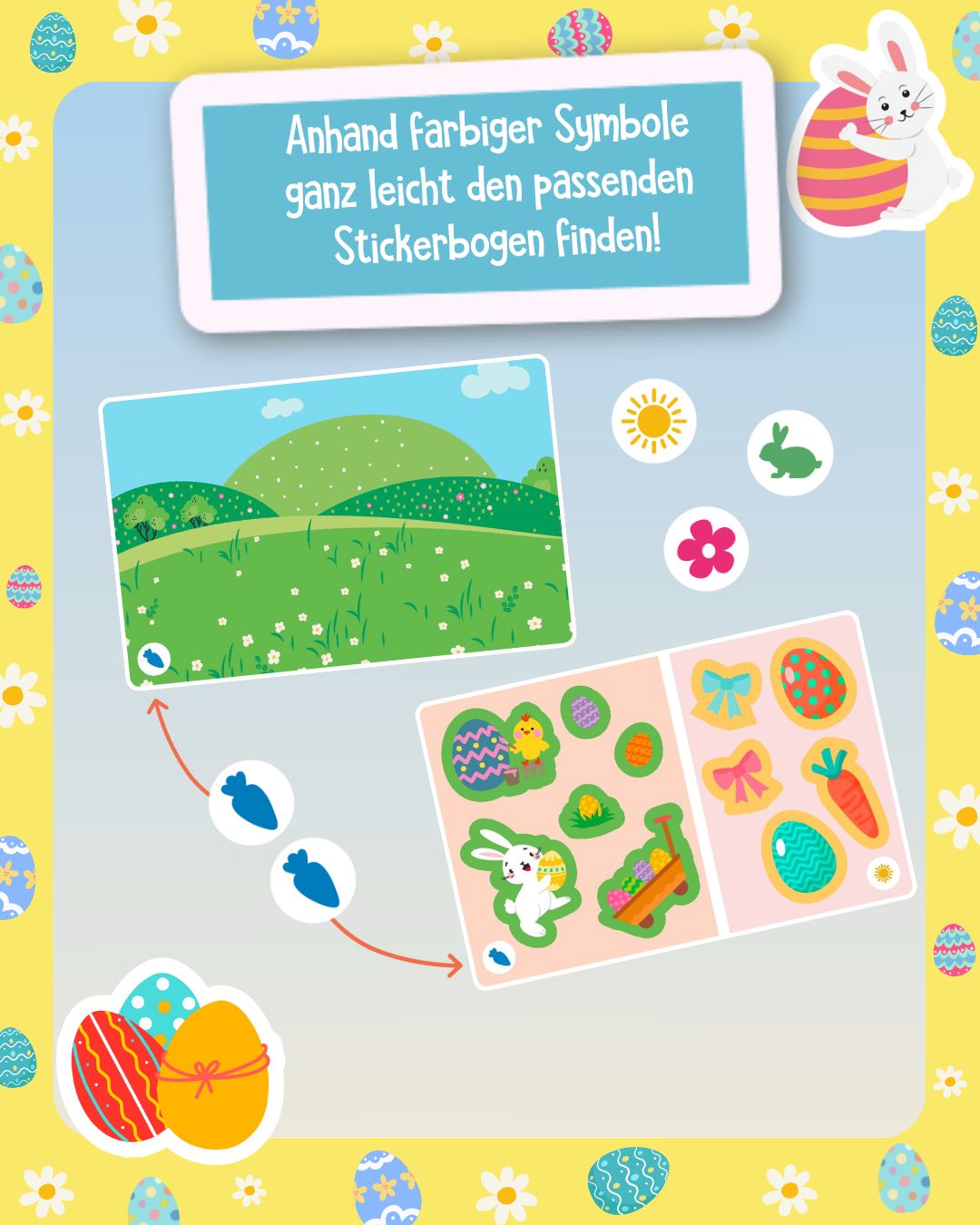 »Frühlingshafter Oster-Stickerspaß im handlichen Kartenformat für Kids!«