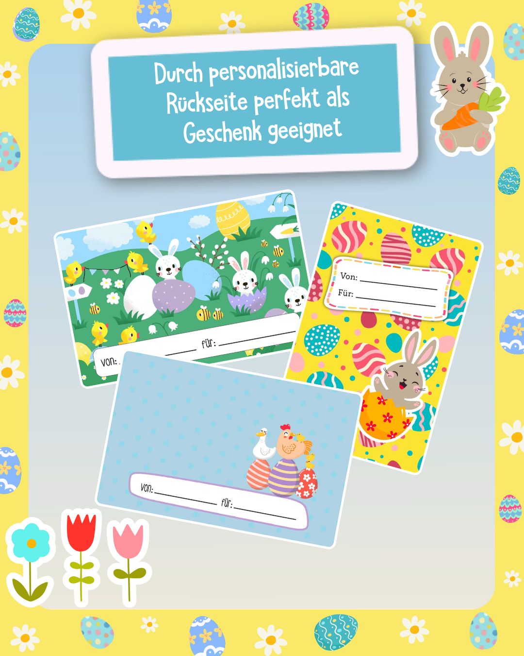 - Perfekt als Geschenk geeignet: Die Gestaltung der Rückseite als Grußkarte macht jedes Kunstwerk zu einem einzigartigen und individuellen Ostergruß.