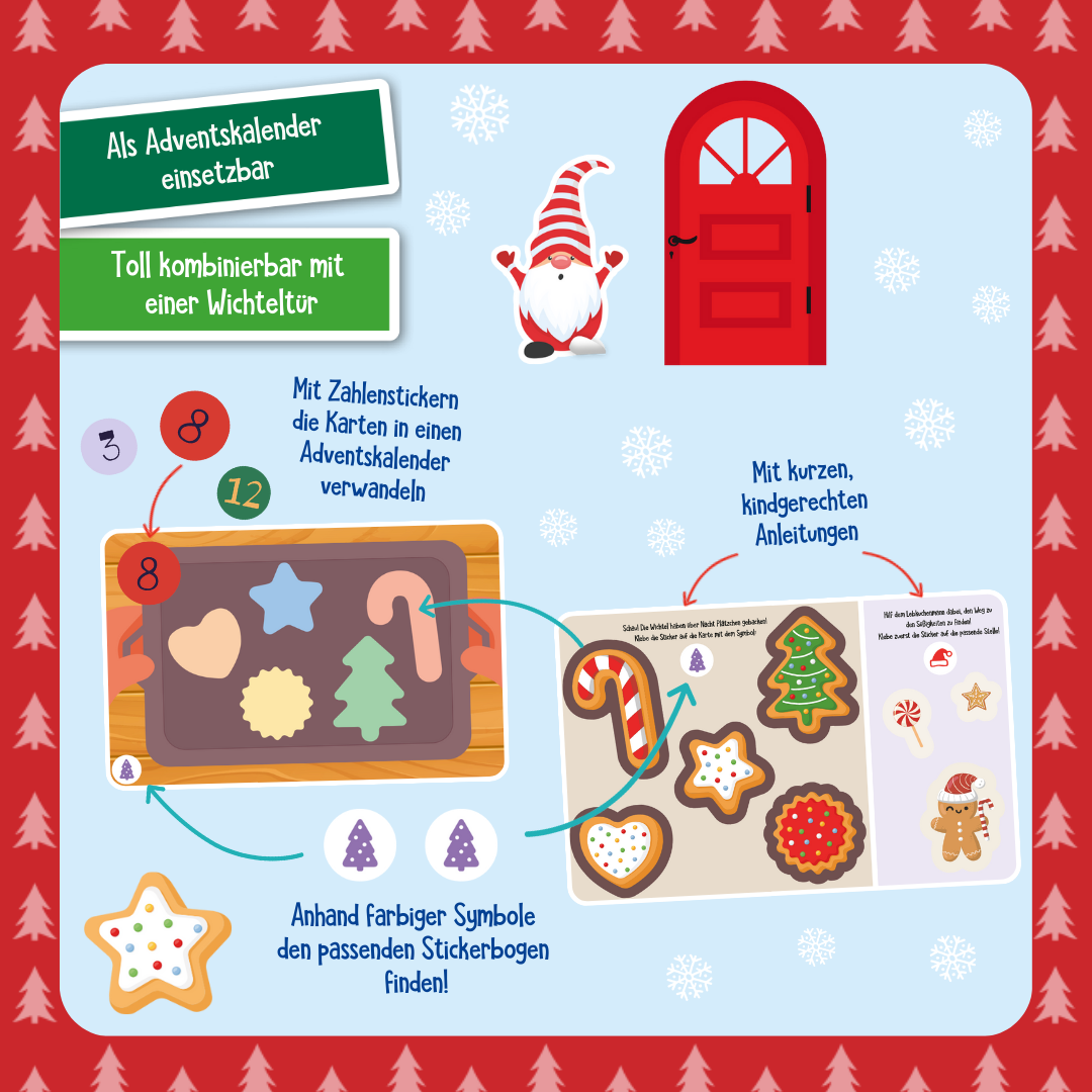 »Weihnachtlicher Stickerspaß mit bezaubernden Wichteln im handlichen Kartenformat!«