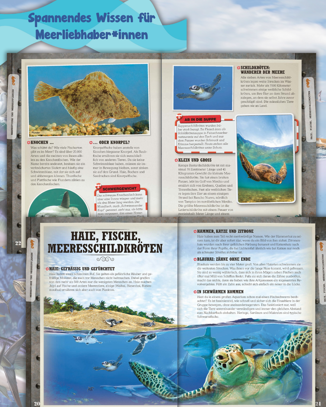 - Wissen für Meeresliebhaber*innen: In packenden Texten werden Sachinformationen zum Lieblingsthema kindgerecht und verständlich vermittelt.