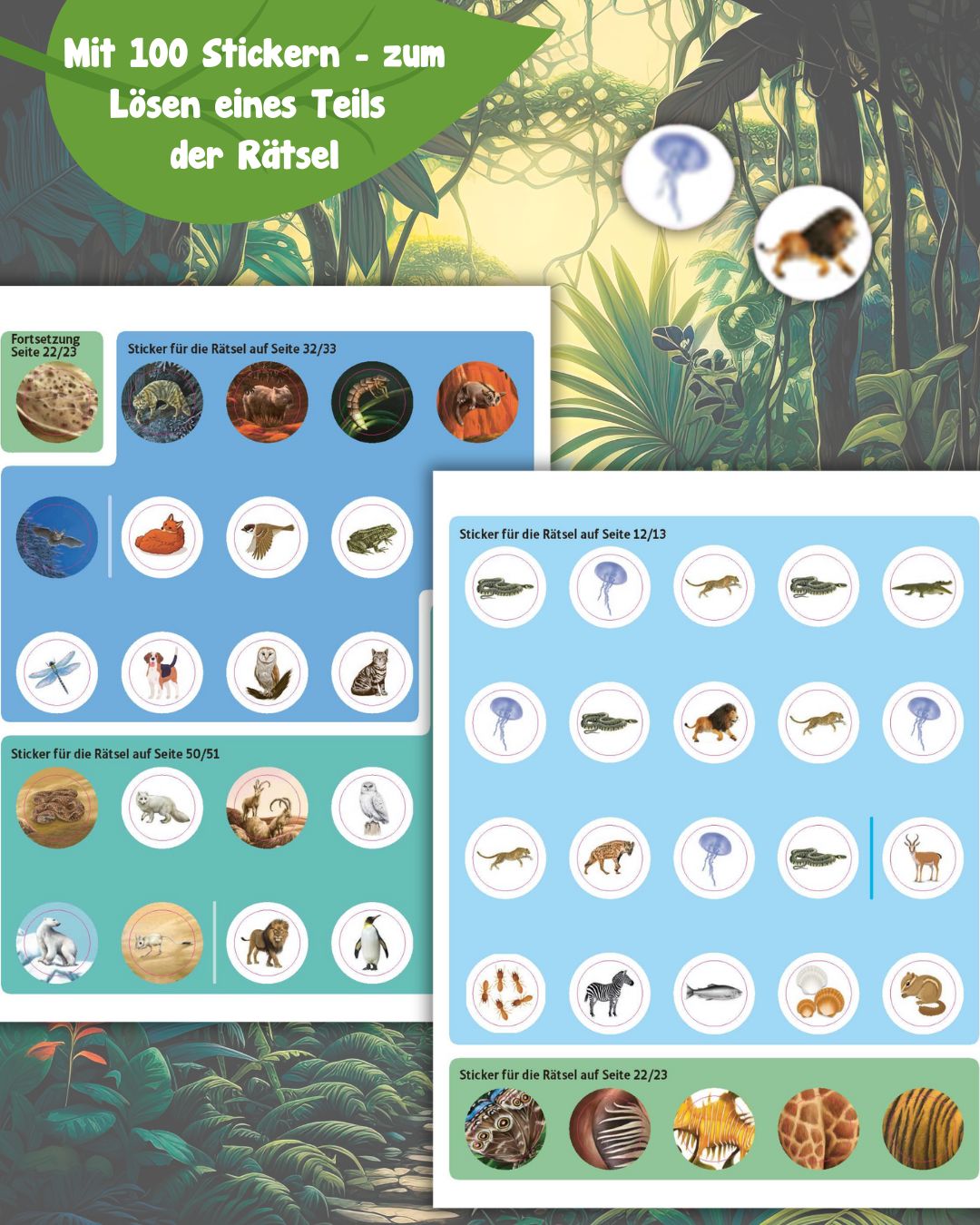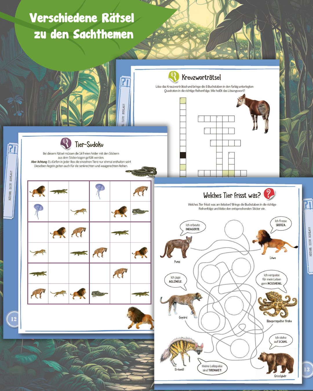 - Rätseln & Stickern: Die bunt gemischten Rätsel müssen auch mithilfe von Stickern gelöst werden.