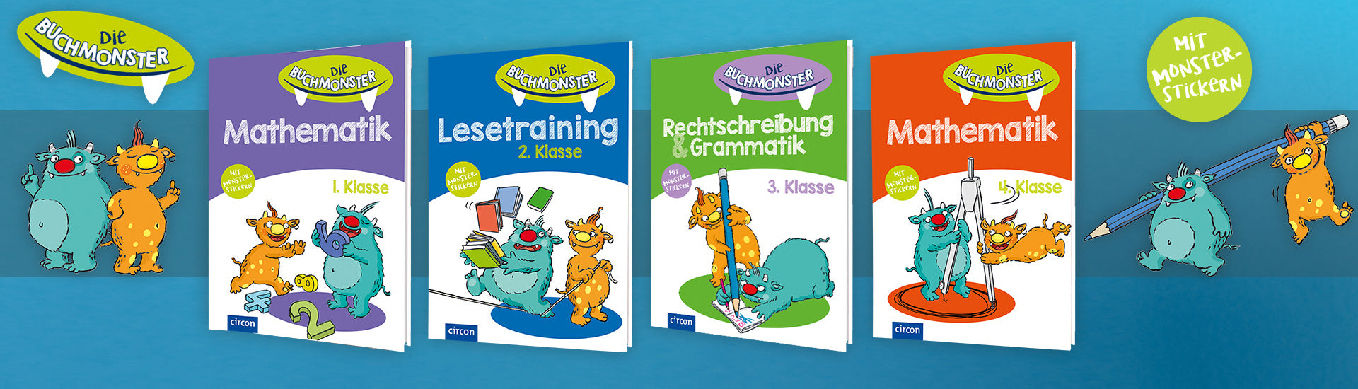 Unsere witzigen Buchmonster Edwin und Jari lieben die Fächer Deutsch und Mathematik! Egal, ob es sich um spannende Geschichten, abwechslungreiche Aufgaben zu Rechtschreibung und Grammatik oder um Matheaufgaben handelt - den beiden Monstern schmeckt einfach alles! Sie führen mit Witz und Verstand durch die Titel der Reihe und sind auch auf der lustigen Zeichnung am Ende des Buches abgebildet. Denn wenn ein Aufgabenblock gelöst wurde, darf ein Bildchen aus dem Stickerbigen gerausgelöst und das Bild vervollständigt werden.