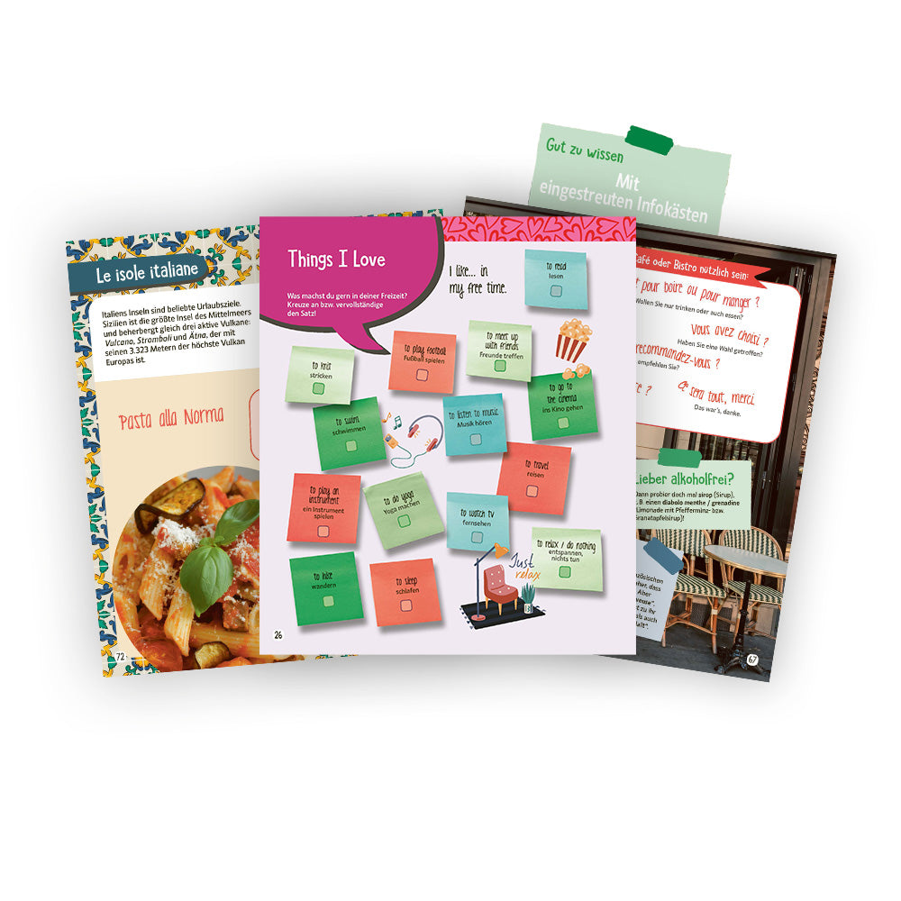 Während des Durchlesens kann gleich die nächste Reise geplant werden! Denn die Bücher wecken die Neugierde, das jeweilige Land mit seinen landestypischen Gepflogenheiten kennenzulernen. Stimmungsvolle Fotos und Illustrationen lassen Urlaubsfeeling aufkommen und erleichtern das Lernen. Die ansprechenden Fotos lösen positive Gefühle bei den Lernenden aus und schaffen eine Verbindung zwischen Wohlfühlmomenten und dem Sprachenlernen.