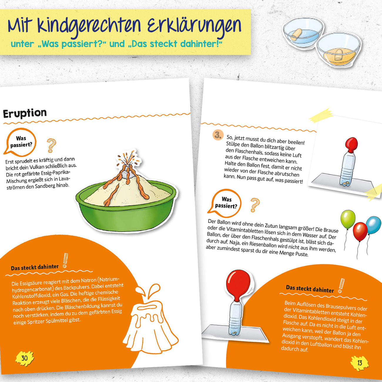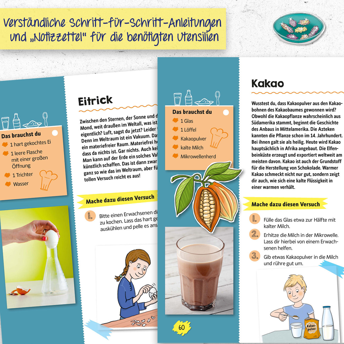Egal ob Experimentieranfänger*in oder Expert*in: Mit den coolen Küchen-Experimenten finden Kids eigenständig Antworten auf ungeklärte Fragen und erforschen sowohl wissenschaftliche als auch alltägliche Phänomene selbst!