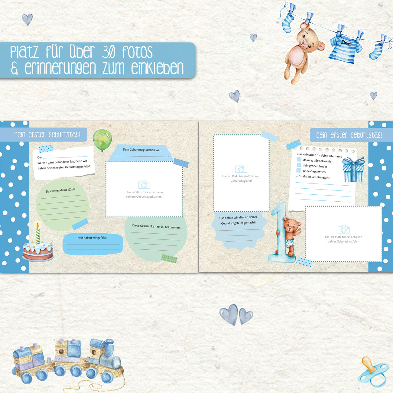 Dieses liebevoll gestaltete Babyalbum ist speziell für den neugeborenen kleinen Bruder konzipiert und bindet die stolzen größeren Geschwister in die Gestaltung mit ein. Hier ist viel Platz für Fotos und die schönsten Erinnerungen an das erste Lebensjahr des neuen Familienmitglieds.