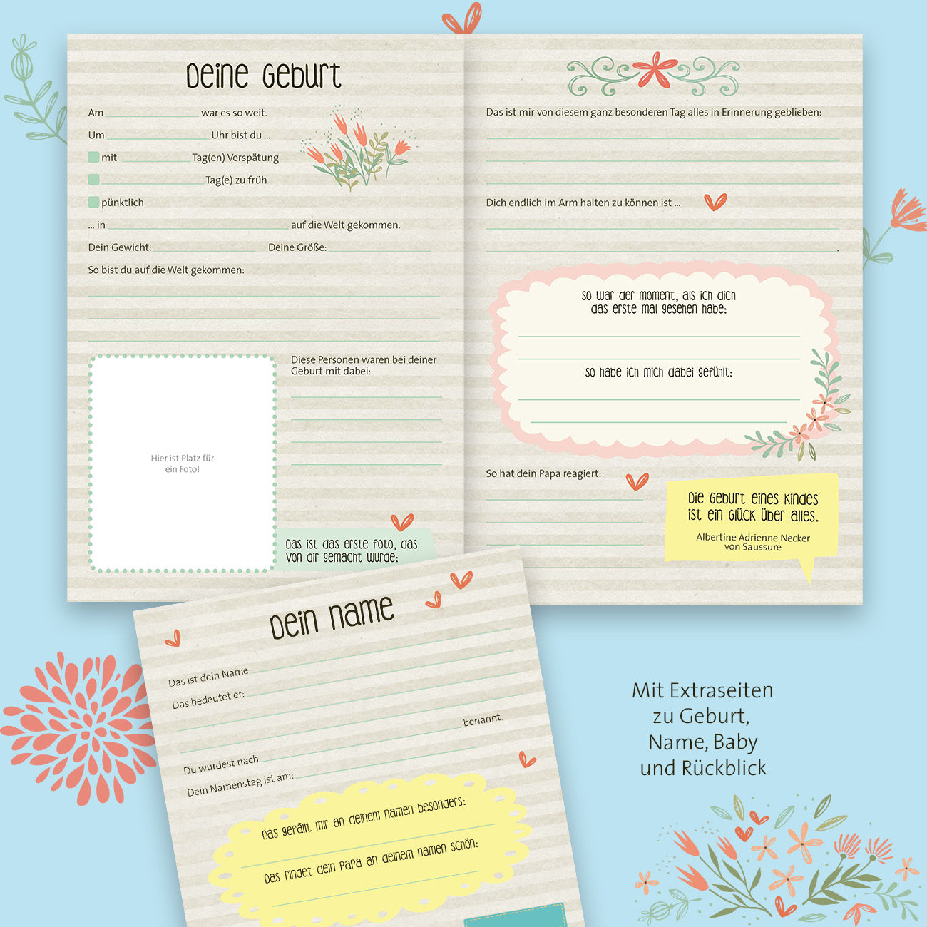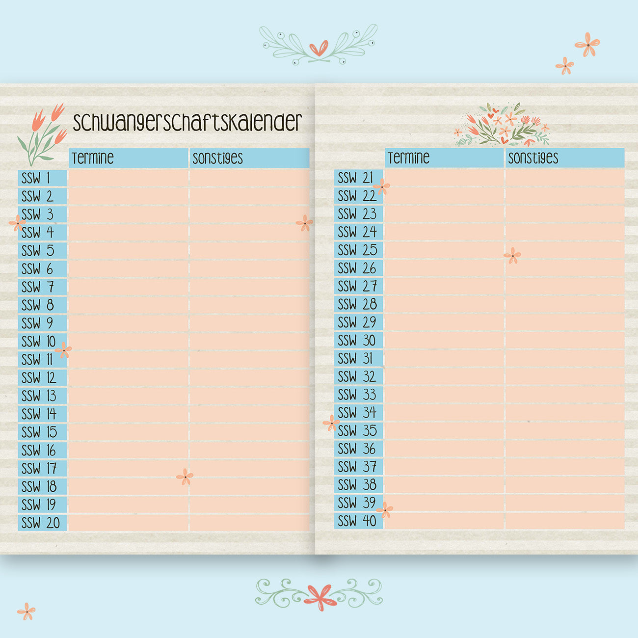 • Mit Schwangerschaftskalender: Und weitere extra Seiten für die Geburt und den Namen des Kindes