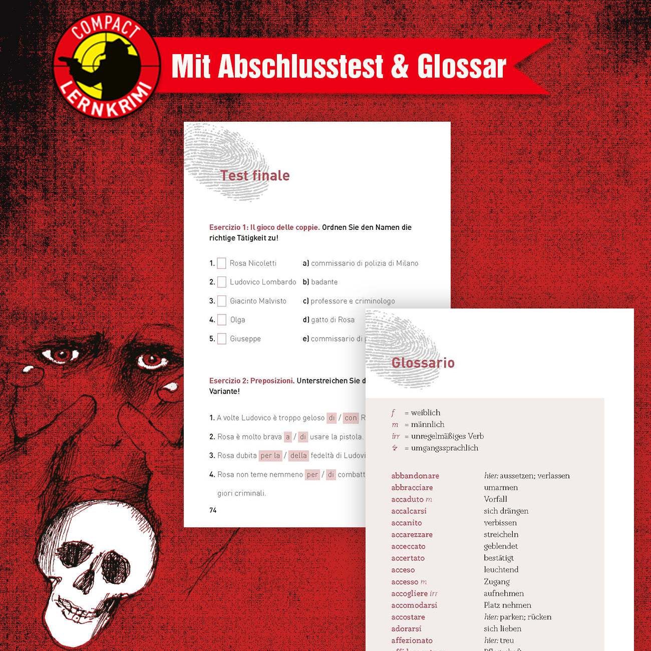 - Infokästen zu Sprache und Grammatik: Zusätzliche Informationen, Tipps und Wissenswertes zu Sprache, Grammatik und Landeskunde runden den Lernkrimi Classic „La mano della morte“ ab.