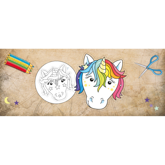 Hier finden Sie zum Thema der Schatzsuche passende Masken zum Ausmalen und Ausschneiden. Für noch mehr Spaß auf der Party zum Thema Einhörner!