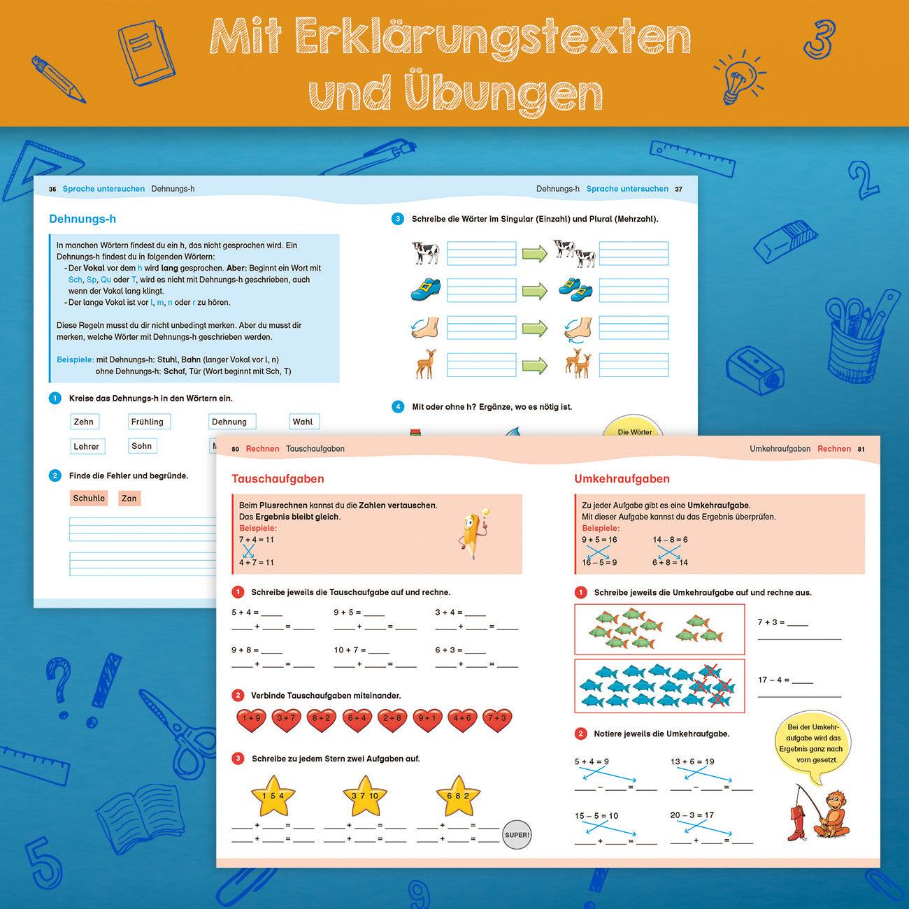 Von der ersten bis zur vierten Klasse helfen die Übungshefte der Reihe „Lückenlos ins nächste Schuljahr“ dabei, die Deutsch- und Mathekenntnisse Ihrer Kinder zu verbessern. Die Aufgaben sind der Klassenstufe entsprechend aufbereitet und mit altersgerechten Erklärungen ergänzt. Die abwechslungsreichen Aufgabentypen behandeln die grundlegenden Inhalte der beiden Hauptfächer.
