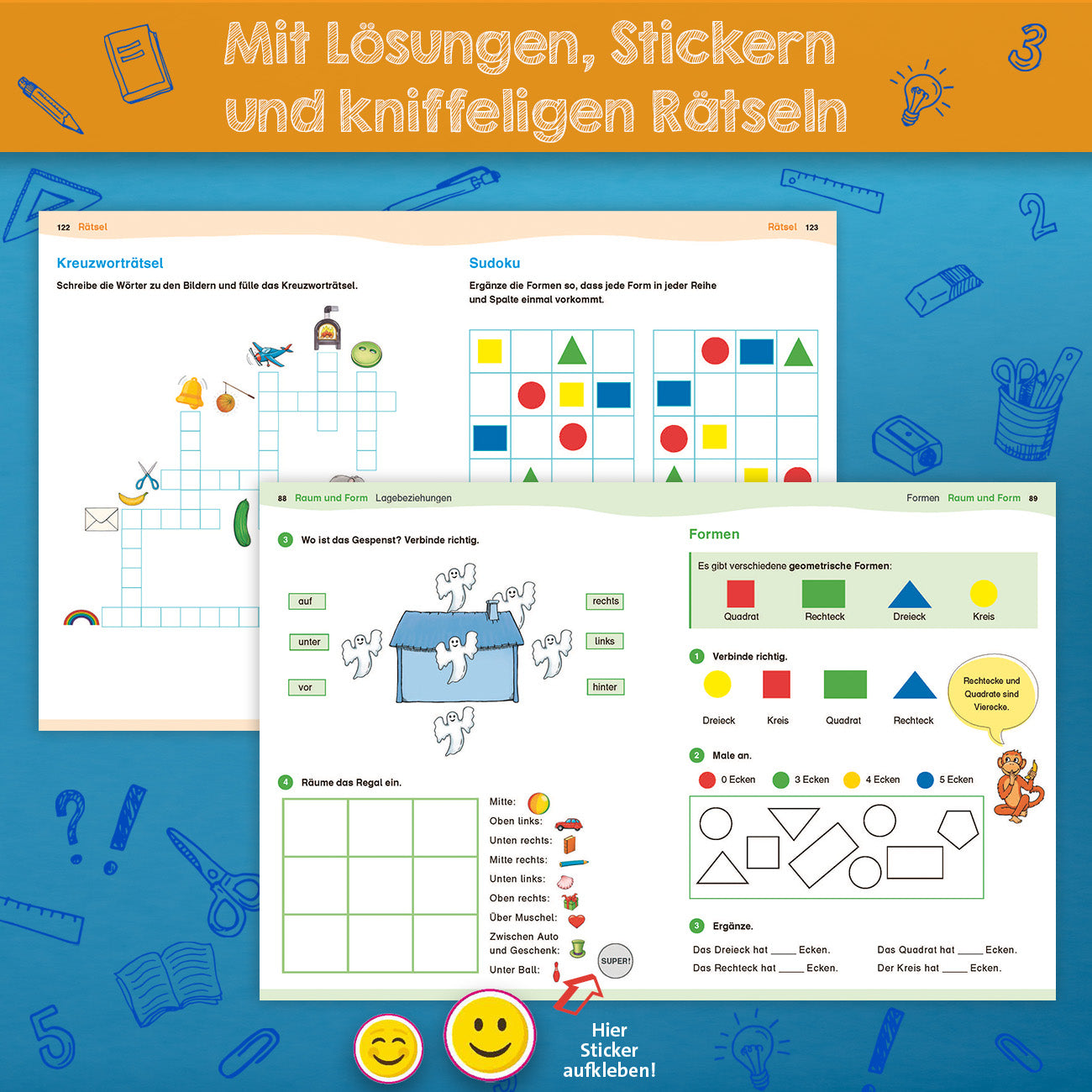 • Sticker-Belohnungssystem: So viel Fleiß gehört belohnt! Für jede bewältigte Lerneinheit darf ein Sticker in den dafür vorgesehenen Kreis am Ende der Doppelseite geklebt werden.