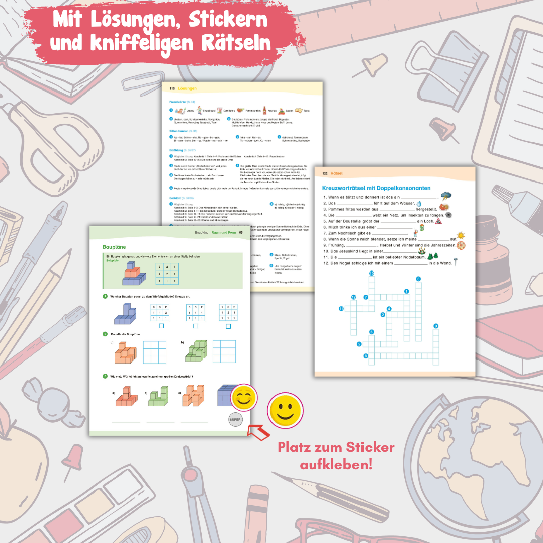 • Sticker-Belohnungssystem: So viel Fleiß gehört belohnt! Für jede bewältigte Lerneinheit darf ein Sticker in den dafür vorgesehenen Kreis am Ende der Doppelseite geklebt werden.