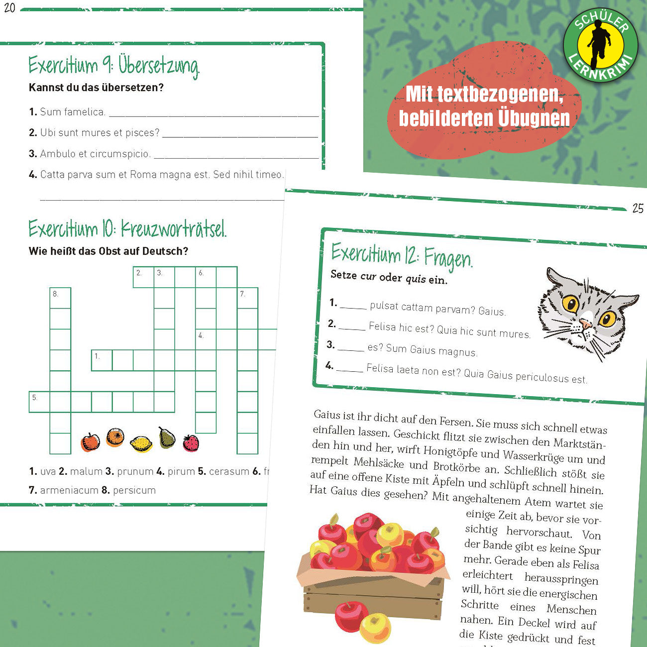 - Bebilderte Übungen: Die teilweise bebilderten Übungen dienen zur Veranschaulichung der Geschichte. Durch den hohen Deutschanteil ist diese einfach zu verstehen. Nach und nach nehmen die lateinischen Textpassagen zu.