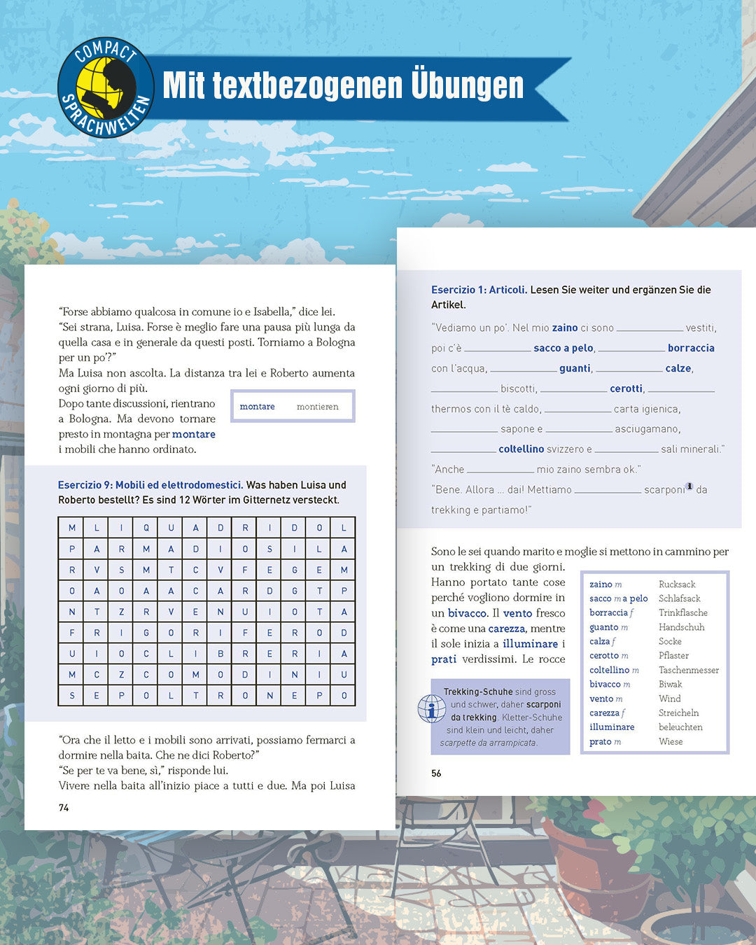 Das erprobte Konzept der Reihe Lernkrimi kommt auch in der Reihe Sprachwelten zum Einsatz. Authentische Texte und gezielte Übungen helfen beim Erlernen der italienischen Sprache und führen Land und Leser zusammen. Ob in der Schule, im Sprachunterricht an der Universität oder im Volkshochschul-Sprachkurs – die  Sprachwelten können überall für den Italienisch-Unterricht eingesetzt werden. Sie lernen lieber zu Hause? Kein Problem! Insbesondere für Selbstlerner*innen bieten die Sprachwelten die Grundlage für einen schnellen Einstieg in die italienische Sprache und können begleitend zu jedem Lehrbuch verwendet werden.