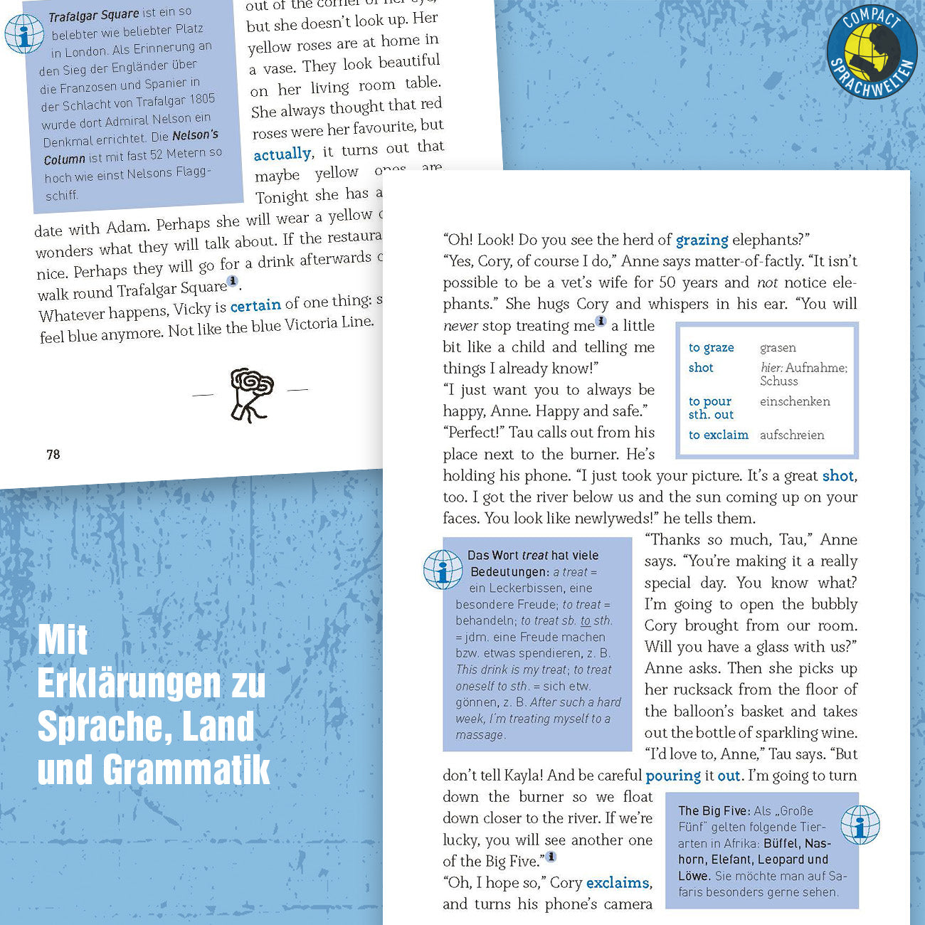 Das erprobte Konzept der Reihe Lernkrimi kommt auch in der neuen Reihe Sprachwelten zum Einsatz. Authentische Texte und gezielte Übungen helfen beim Erlernen der englischen Sprache und führen Land und Leser*innen zusammen. Ob in der Schule, im Sprachunterricht an der Universität oder im Volkshochschul-Sprachkurs – die Sprachwelten können überall für den Englisch-Unterricht eingesetzt werden. Sie lernen lieber zu Hause? Kein Problem! Insbesondere für Selbstlerner*innen bieten die Sprachwelten die Grundlage für einen schnellen Einstieg in die englische Sprache und können begleitend zu jedem Lehrbuch verwendet werden.