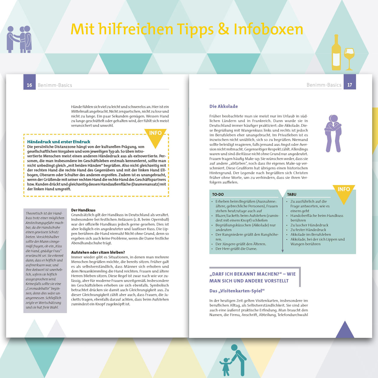 Das Nachschlagewerk von Benimmprofi Silke Schneider-Flaig gibt die richtigen Umgangsformen für das private und berufliche Umfeld an die Hand. Von der passenden Begrüßung bis hin zu korrekten Umgangsform im (Online-) Meeting - hier gibt es Antworten auf alle wichtigen Fragen. Für einen stets souveränen und korrekten Auftritt!