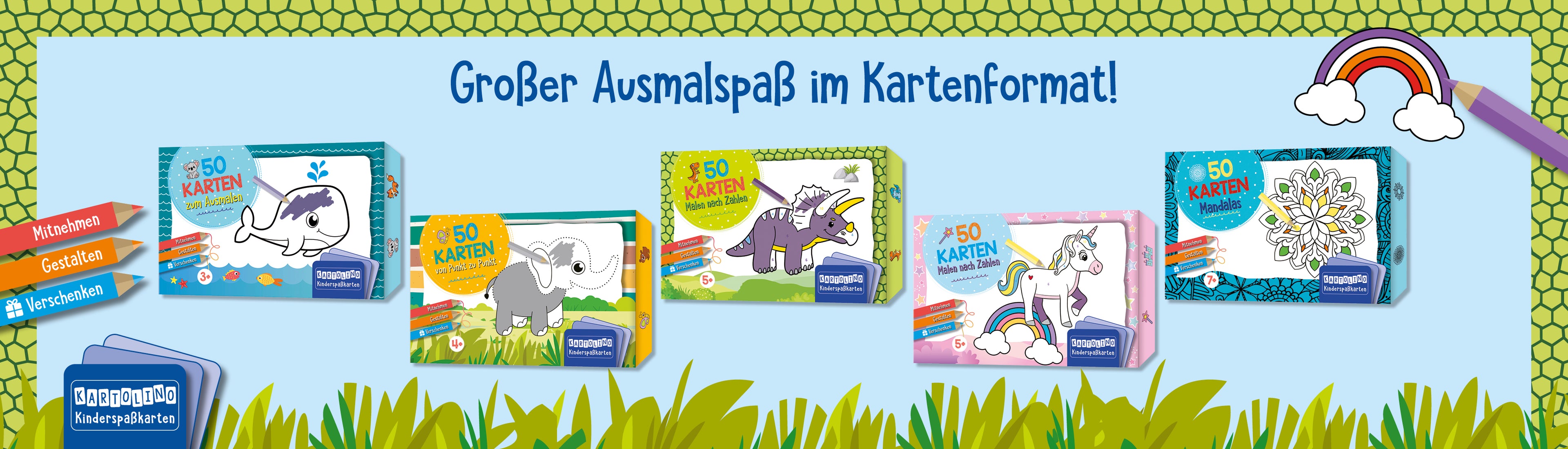 Kinder können die Karten sowohl mit Bunt- und Filzstiften, als auch mit Wachsmalstiften und Wasserfarben ausmalen.