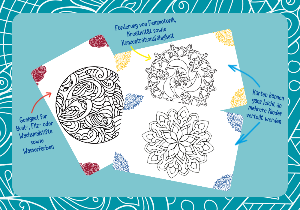 Beim Ausmalen werden ganz nebenbei Feinmotorik und Konzentration trainiert, es sorgt für Entspannung und der Kreativität sind dabei keine Grenzen gesetzt!
